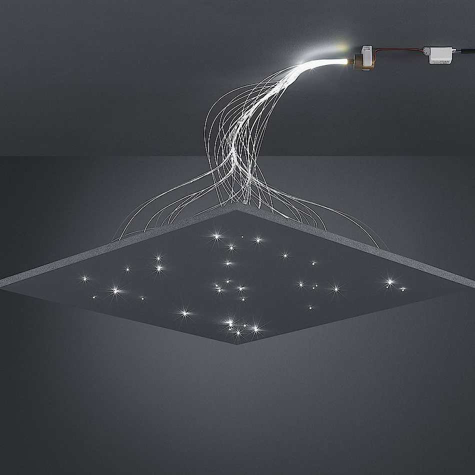 Ob Sternenhimmel mit Sternenflimmern oder Sternschnuppen, ein Blick in die Weite der Galaxien oder farbige Lichtpunkte mit und ohne Bewegung, die Fasertechnik schafft für ihre Anwender Möglichkeiten, die sich mit anderen Lichtquellen nicht erzeugen lassen. Auch die Installation ist einfach und an jeder abgehängten Decke möglich. Durch die ausbleibende Erhitzung der Fasern kann diese Form der Beleuchtung sowohl in Holz, wie auch in tapezierten Decken integriert werden. Lediglich der Projektor muss so platziert werden, dass für ausreichend Belüftung gesorgt ist. Nicht nur im Innenbereich, sondern auch Outdoor hat sich die Fasertechnik durchgesetzt und dem Kunden neue Möglichkeiten zur kreativen Umsetzung von Beleuchtungsideen geboten. Der geringe Installationsaufwand, der einfache Betrieb ohne eine Erweiterung der Stromquellen im Objekt, sowie die zahlreichen Möglichkeiten verspielter und klassischer Effekte sorgen für ungetrübte Begeisterung, wie auch eine präzise Inszenierung verschiedenster Flächenbeleuchtungen und visueller Besonderheiten.
