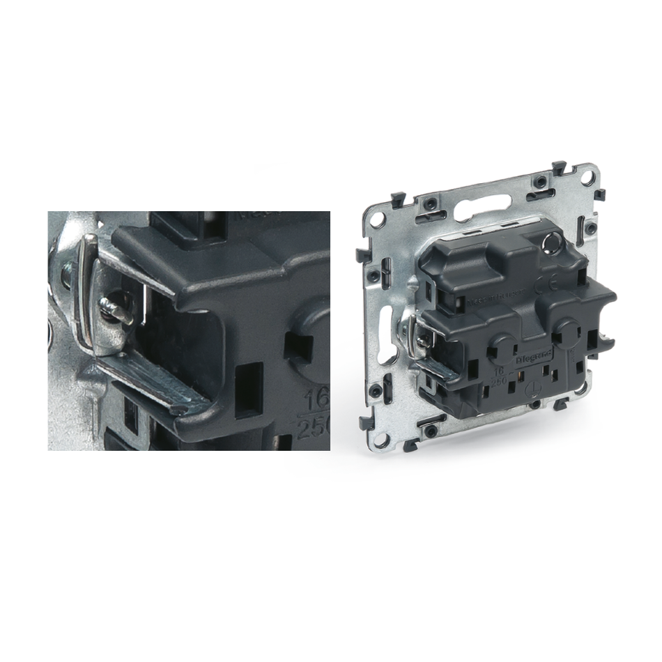 Plexo™ New garantiert eine vereinfachte Installation dank seines konkurrenzlosen Platzes für die Verdrahtung und seines werkzeuglosen, beweglichen Einrastmechanismus. Mit der gleichen Referenznummer für Aufputz- und Unterputzdosen können Sie Plexo™ New sowohl horizontal als auch vertikal installieren.