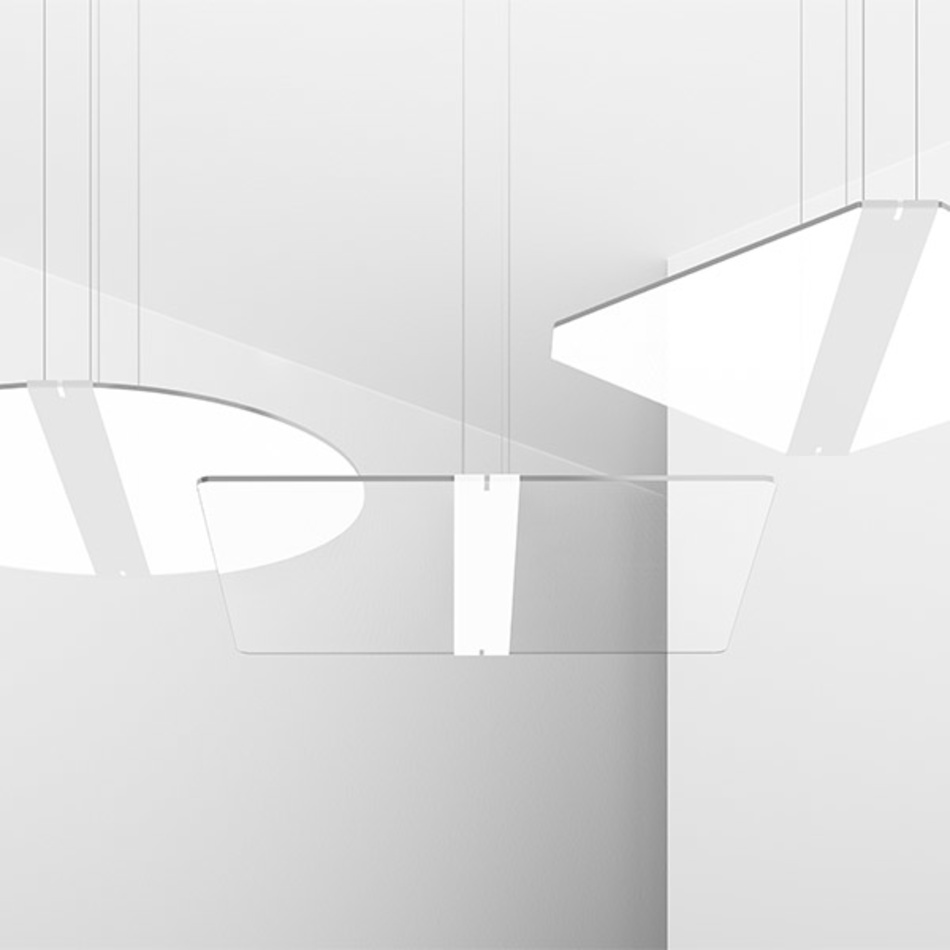 - TWINDOT SYSTEM S : Außergewöhnliche LED Einzelleuchten-Formate, superflach und exklusiv - 4-Punkt Pendelabhängung mit Stromzuführung über filigrane Pendelseile